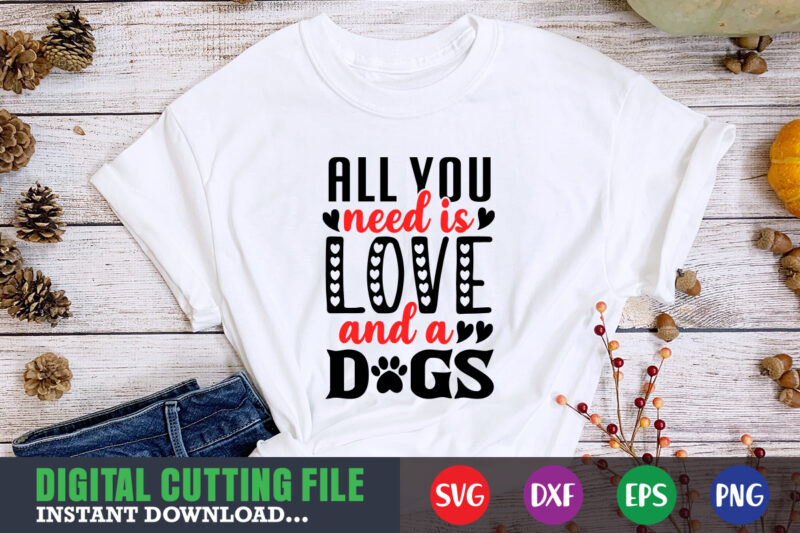 All you need is love and a dogs svg, valentine shirt svg, mom svg, mom life, svg, dxf, eps, png files for cutting machines cameo cricut, valentine png,print template,valentine svg t shirt vector