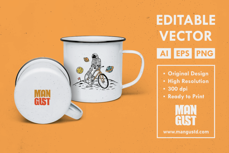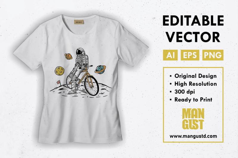 Astronaut Biker is a vintage handdrawn illustration that is suitable for apparel or merchandise about space, astronaut, ufo, alien, nasa, planet, rocket, galaxy, mars, bike, bicycle, biker, sport, travel, adventure.