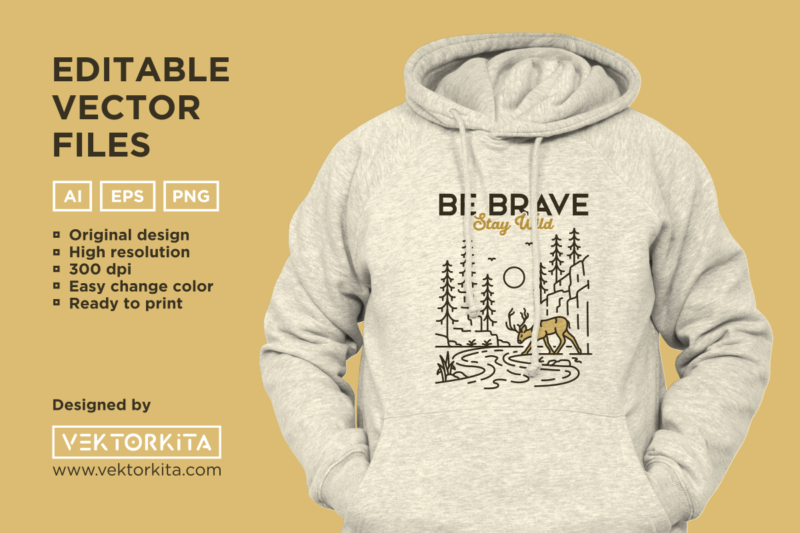 Is a monoline illustration that is suitable for apparel or merchandise about nature, outdoors, animal, deer, wild, wildlife, forest, adventure, national park, mountain, antler, fauna, wilderness, wanderlust, wyoming.