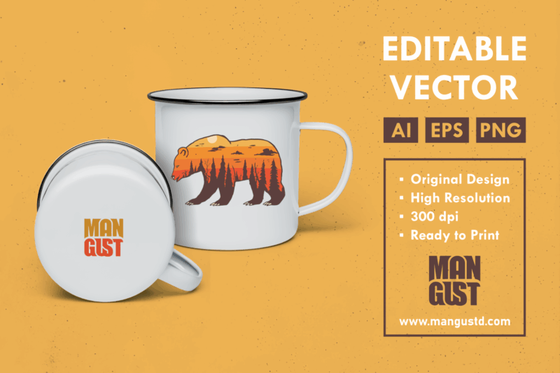 Bear Forest is a vintage illustration that is suitable for apparel or merchandise about nature, outdoors, forest, national park, adventure, wildlife, animal, bear, wild, national park, travel, wanderlust.