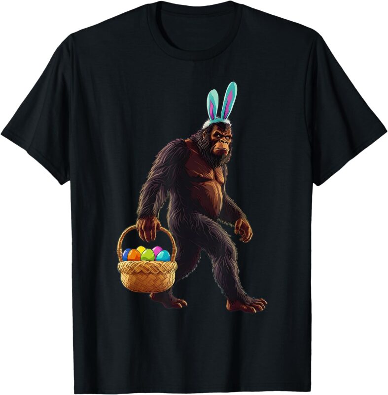 Bigfoot Sasquatch Bunny Easter Eggs Retro Men Women Kids T-Shirt