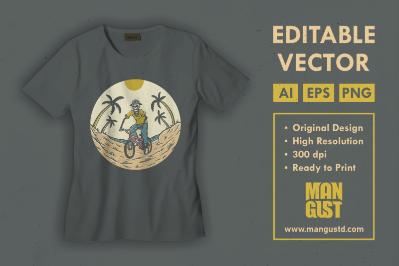 [email protected]Bike to the Beach is a vintage illustration that is suitable for apparel or merchandise about nature, outdoors, summer, vacation, holiday, beach, holiday, bicycle, bike, sport, skull, skeleton, horror, biker, halloween, sea, ocean.
