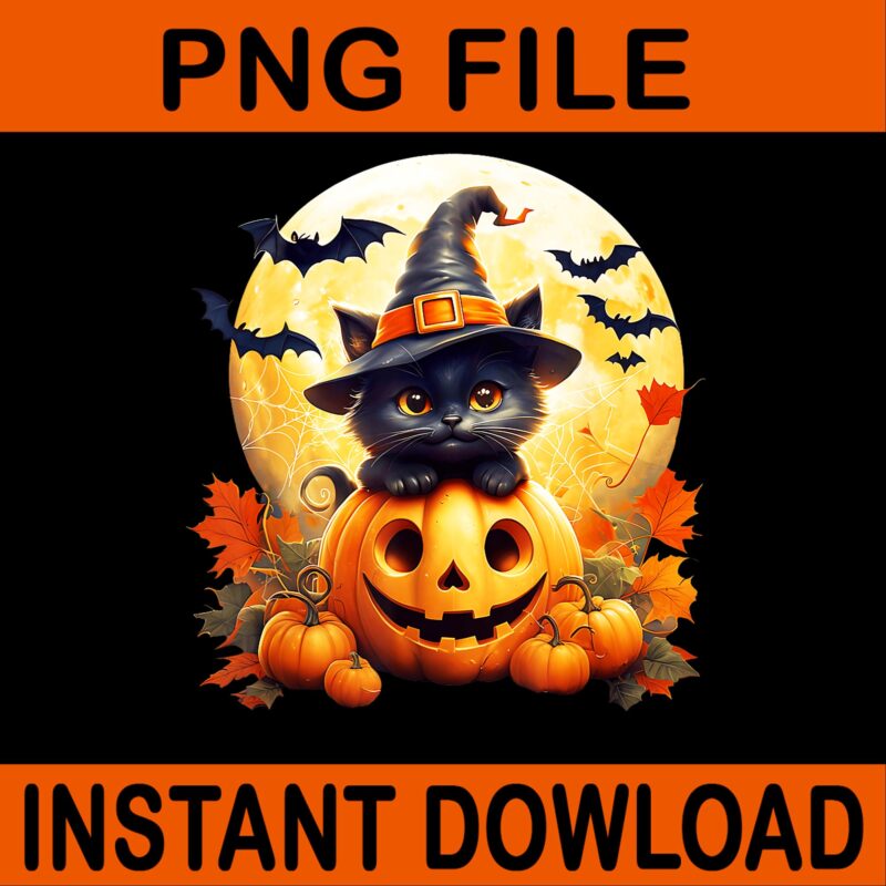 [email protected]Black Cat Witch Pumpkin Halloween PNG, Retro Cat Witch Fall Autumn PNG