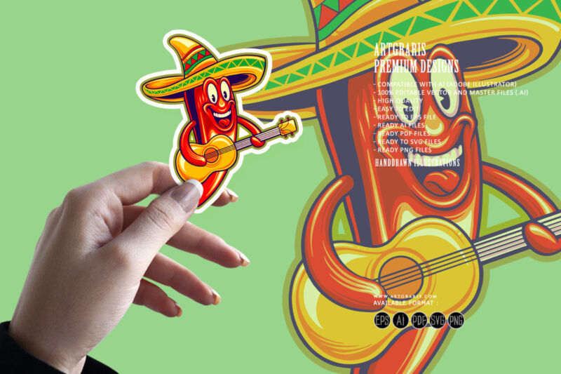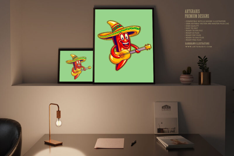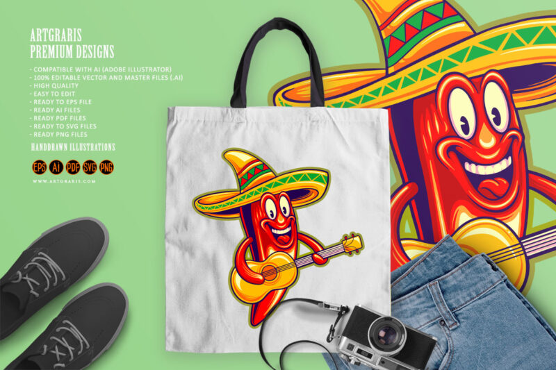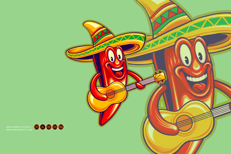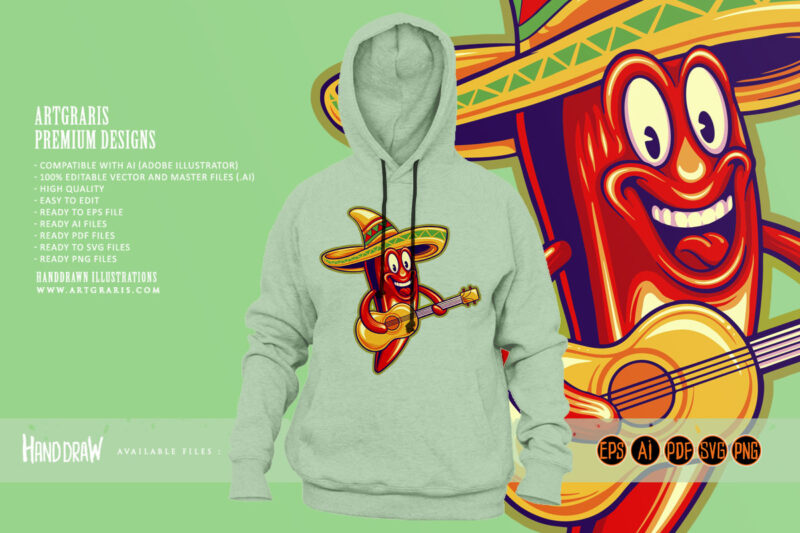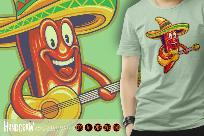 Chilli pepper cinco de mayo mexican guitar illustrations t shirt vector file