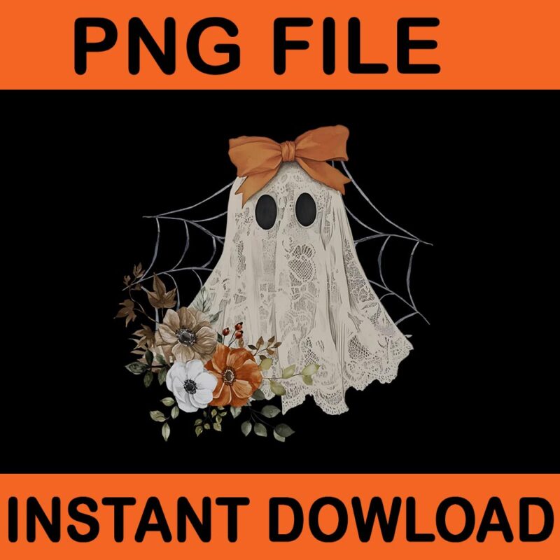 Coquette Ghost Halloween Flower PNG, Ghost Spooky Lace PNG t shirt vector file