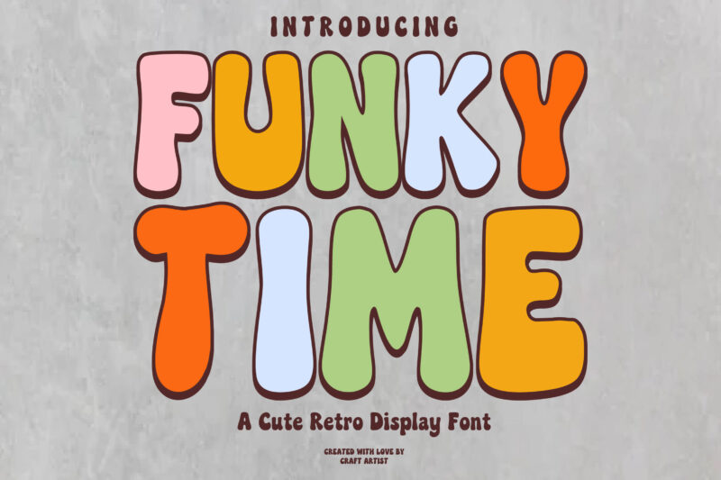 font 70s font, 80s font, aesthetic font, bold display font, bubble font, cartoon font, colorful font, cute font, display font, fun font, funky lettering, Funky Time, groovy font, logo font, playful font, poster font, retro font, retro lettering, retro style font, t-shirt font, vintage font, vintage typog