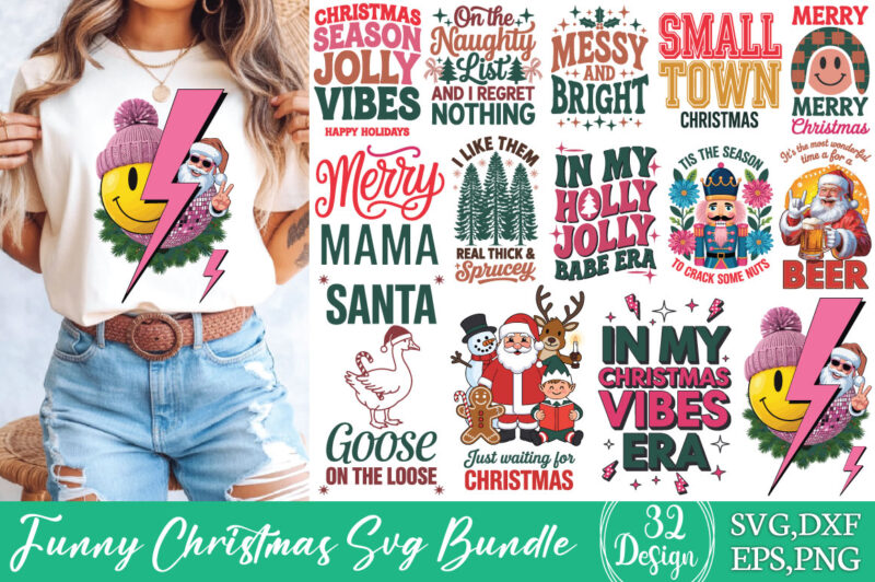 Design Title: "Funny Christmas Svg Bundle" which you will receive as a zip file with the following format.