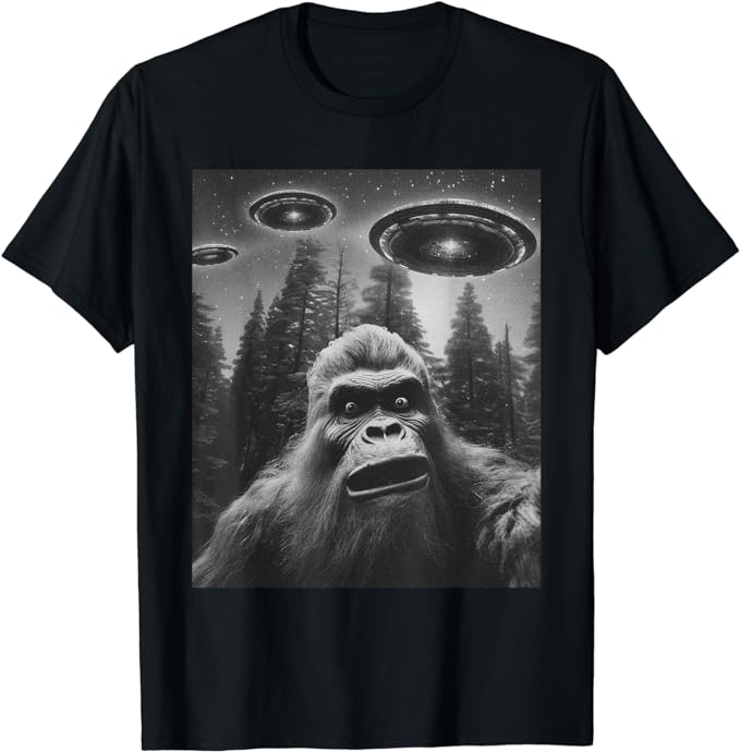 Funny Graphic Tee For Men Women Bigfoot Sasquatch Alien UFO T-Shirt