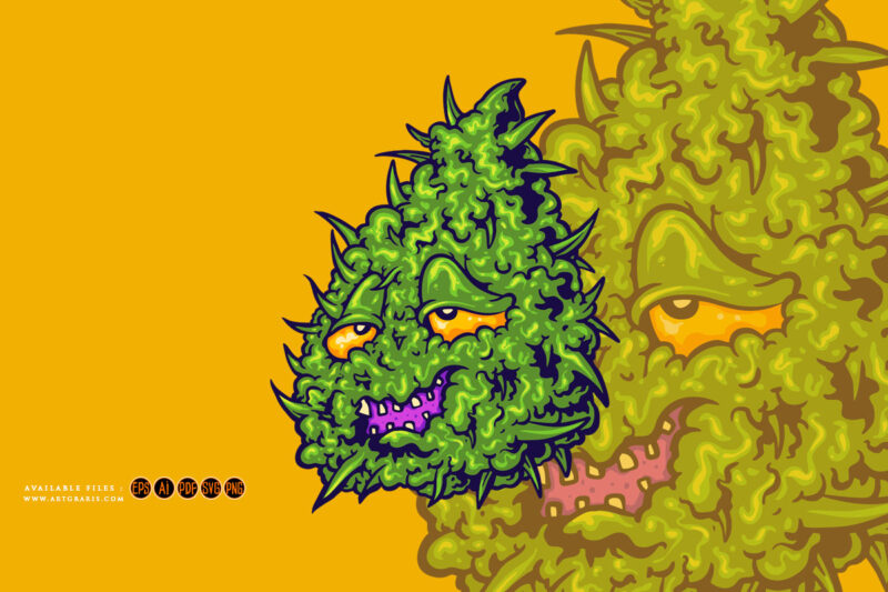 Funny marijuana sativa leaf cannabis plant logo cartoon illustrations t shirt graphic design