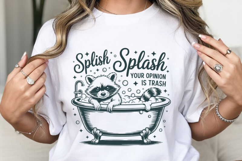Funny raccoon graphic tees, sarcastic and quirky t-shirt designs, cute animal quotes, fun raccoon bath and trash shirt