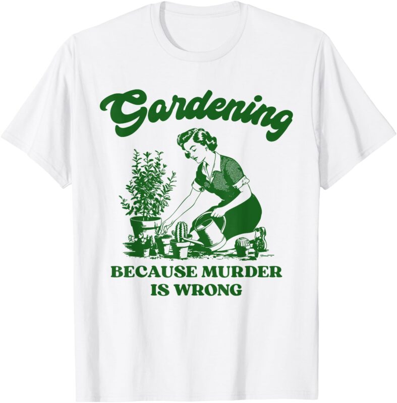 Gardening Because Murder Is Wrong Funny Plant Lover Joke T-Shirt