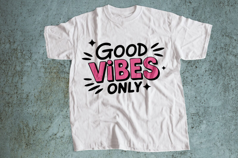 Keep it chill and positive with this bold “Good Vibes Only” typography T-shirt design. Perfect for anyone who believes in spreading positivity, happiness, and a carefree lifestyle. This versatile design works beautifully for streetwear, summer collections, or motivational merch lines.