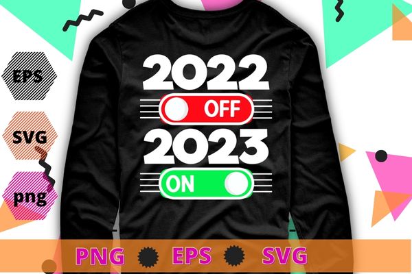 Goodbye 2022 Hello 2023 New Year New Me on off switch funny new year T-Shirt design svg, Goodbye 2022 Hello 2023 png, New Year, on off switch funny new year, New years 2023 shirt design, New years,lunar new year, lunisolar new year, new year lunar, new year's day, chinese new year 2022, new year eve, firework, funny, saying, cute file, screen print, print ready, vector eps, editable eps, shirt design png, quote,text design for t-shirts, prints, posters, stickers,