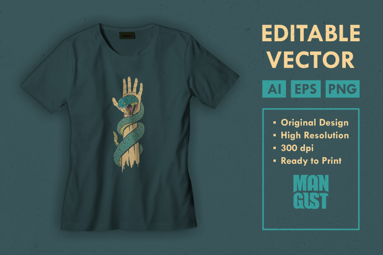 Hand of Snake is a vintage illustration that is suitable for t-shirts, jackets, or merchandise with the theme of snake, animal, wild, wildlife, reptile, nature, serpent, viper, dangerous, skin, poison, predator, art, python, cobra.