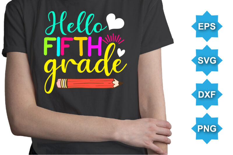 Hello fifth grade, happy back to school day shirt print template, typography design for kindergarten pre k preschool, last and first day of school, 100 days of school shirt