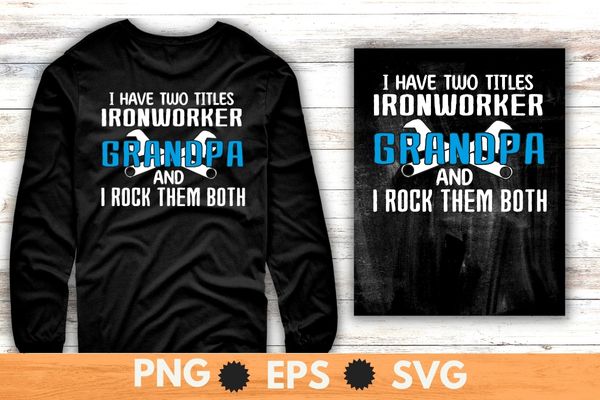 I have two titles Ironworker grandpa funny Welding Metalworkers T-shirt design svg, Welding shirt png, Ironworker shirt design svg, Metalworkers eps, Mechanics shirt, funny, saying, cute file, screen print, print ready, vector eps, editable eps, shirt design png, quote,text design for t-shirts, prints, posters, stickers, Your purchase includes a ZIP File with the following file formats; • EPS • SVG • PNG (transparent) -----Artbord Size--- • 4500*5400 (300 Dpi) RGB • Text are not editable