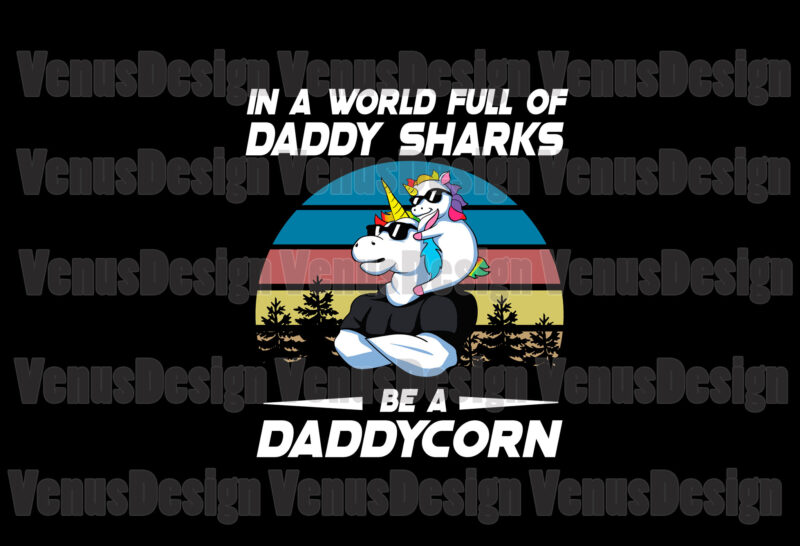 In a world full of daddy sharks be a daddycorn svg, fathers day svg, daddy svg, daddycorn svg, daddy unicorn svg, unicorn dad svg, father svg, daddy shark svg, unicorn t shirt design for sale