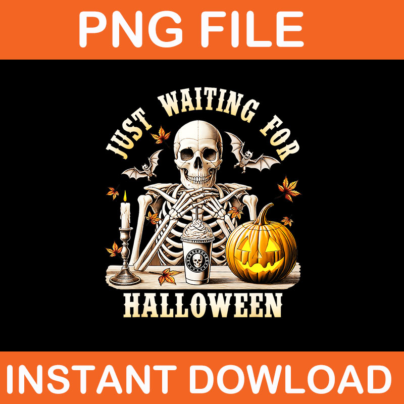 Just Waiting For Halloween Skeleton Coffee Spooky Season PNG