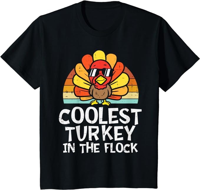 Kids coolest turkey in the flock toddler boys thanksgiving kids t-shirt 1