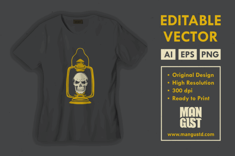Lantern Skull Halloween is a vintage illustration that is suitable for apparel or merchandise about skull, skeleton, horror, halloween, scary, spooky, dead, death, trick or treat, zombie, monster, lantern.