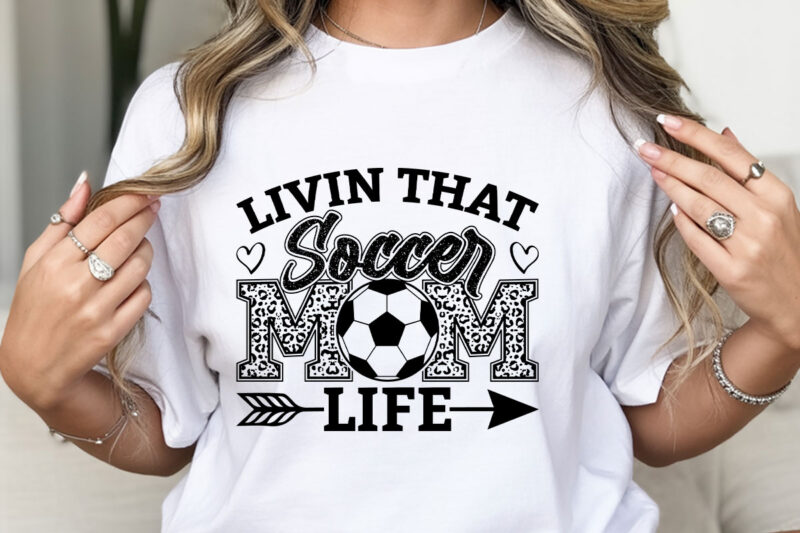 Livin that soccer mom life svg leopard print sporty quote design football mom digital download family craft