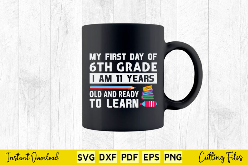 My First Day Of 6th Grade I'm 11 Years Old And Ready To Learn Svg T shirt Design.