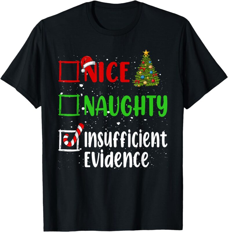 Nice Naughty Insufficient Evidence Christmas List Holiday T-Shirt