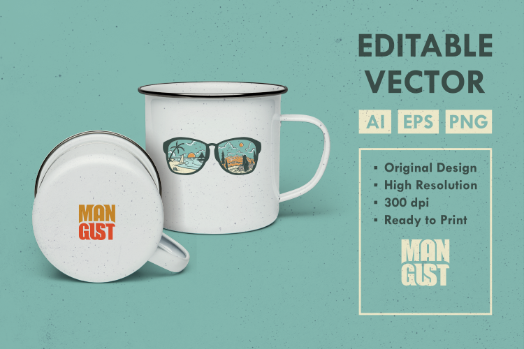 Paradise Glasses is a vintage illustration that is suitable for t-shirts, jackets, or merchandise with the theme of summer, travel, vacation, holiday, beach, tropical, sea, nature, ocean, sand, sun, paradise, tourism, island, landscape.