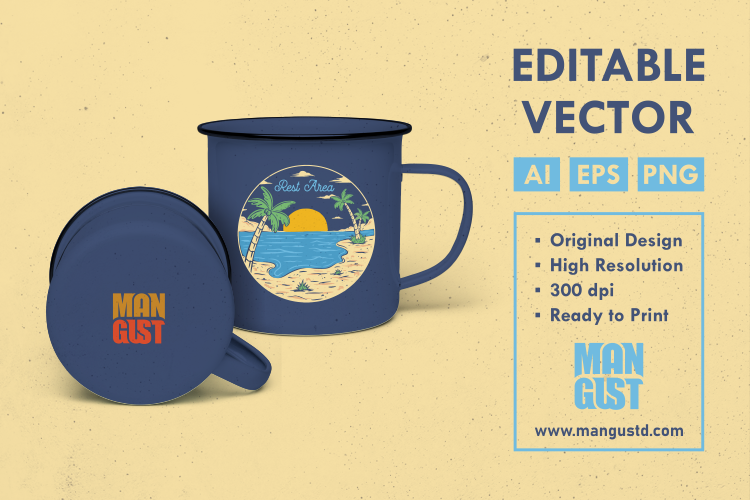 Rest Area is a vintage handdrawn illustration that is suitable for apparel or merchandise about summer, vacation, holiday, beach, sea, ocean, surfing, nature, outdoors, travel, waves, camping, tropical, paradise, good vibes.