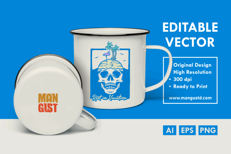 [email protected]Rest in Vacation is a vintage handdrawn illustration that is suitable for apparel or merchandise about skull, skeleton, horror, halloween, trick or treat, summer, vacation, holiday, beach, travel, island, flamingo, nature, tropical, outdoors.