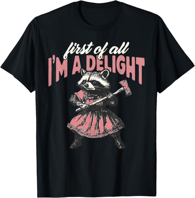 Retro First of All I'm a Delight Men Women Funny Raccoon T-Shirt