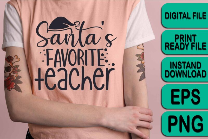 Santa’s favorite teacher, merry christmas shirt print template, funny xmas shirt design, santa claus funny quotes typography design
