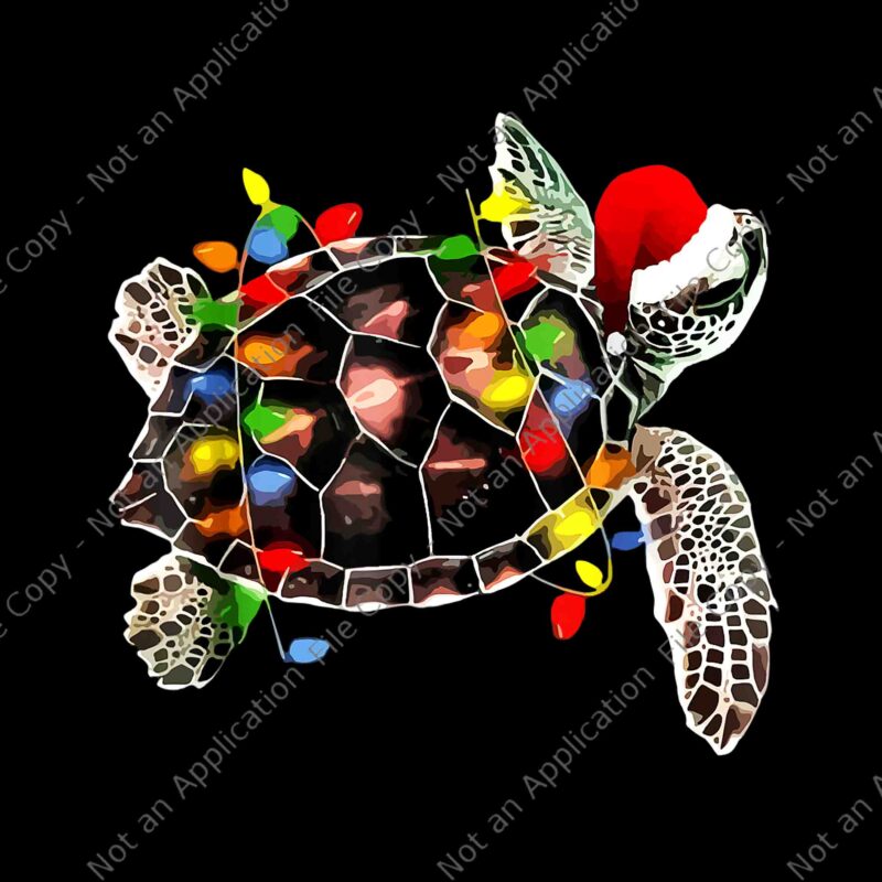 Sea Turtle Christmas Lights Png, Funny Turtle Santa Hat Merry Christmas Png, Turtle Xmas Png, Christmas Png