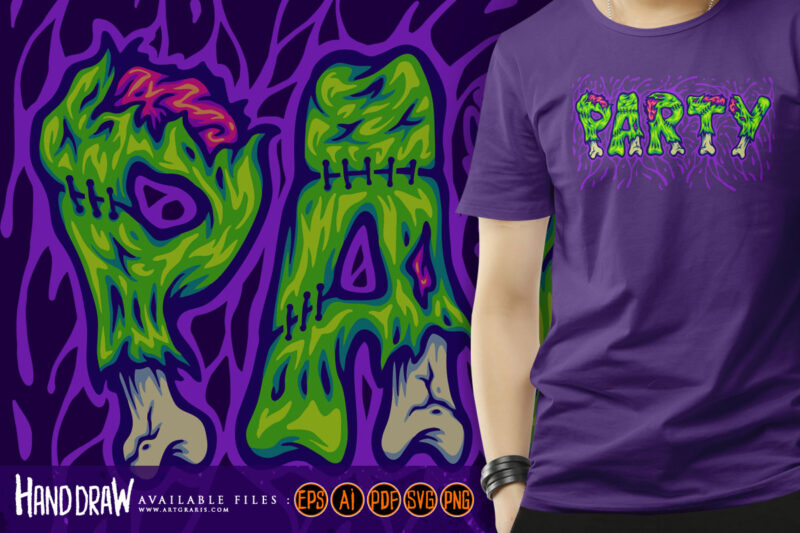 Spooky zombie bone word party text lettering word illustrations t shirt template vector