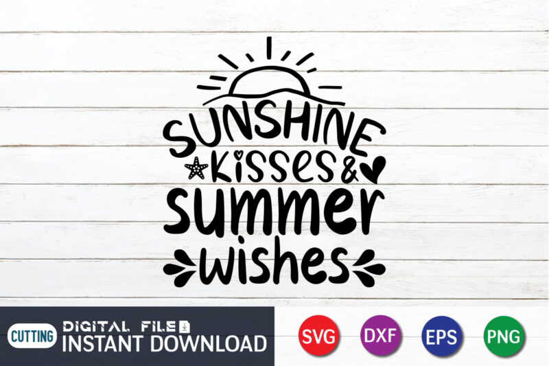 Sunshine kisses and summer wishes t shirt, happy summer shirt print template, summer vector, summer shirt svg, beach vector, beach shirt svg, beach life, typography design for summer day, summer