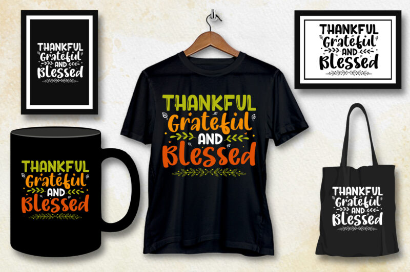 Thankful Grateful Blessed Thanksgiving T-Shirt Design Graphic All Files are :