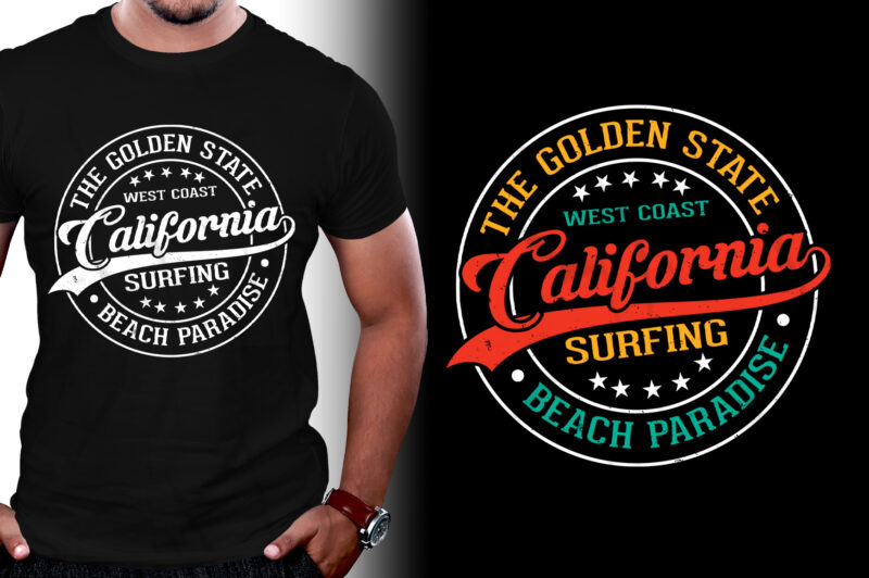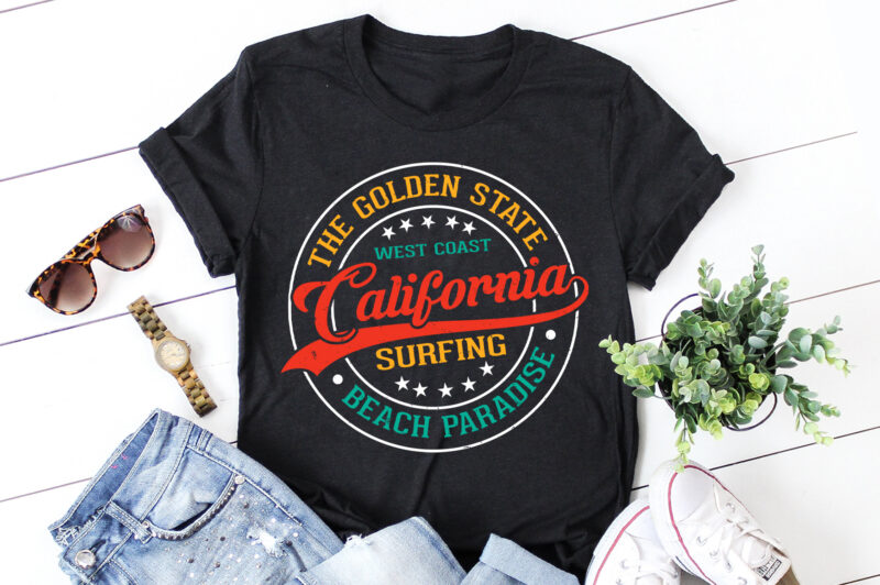 The Golden State California Surfing T-Shirt Design Graphic All Files are :