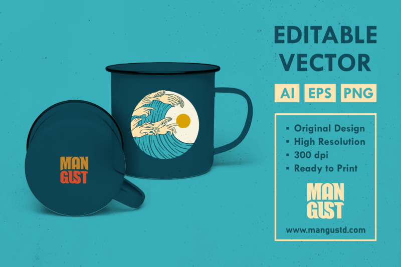 The Great Wave off Hand is a vintage illustration that is suitable for apparel or merchandise about summer, vacation, holiday, travel, nature, outdoors, tropical, mountain, beach, national park, sea, ocean, wave, surfing.