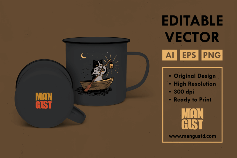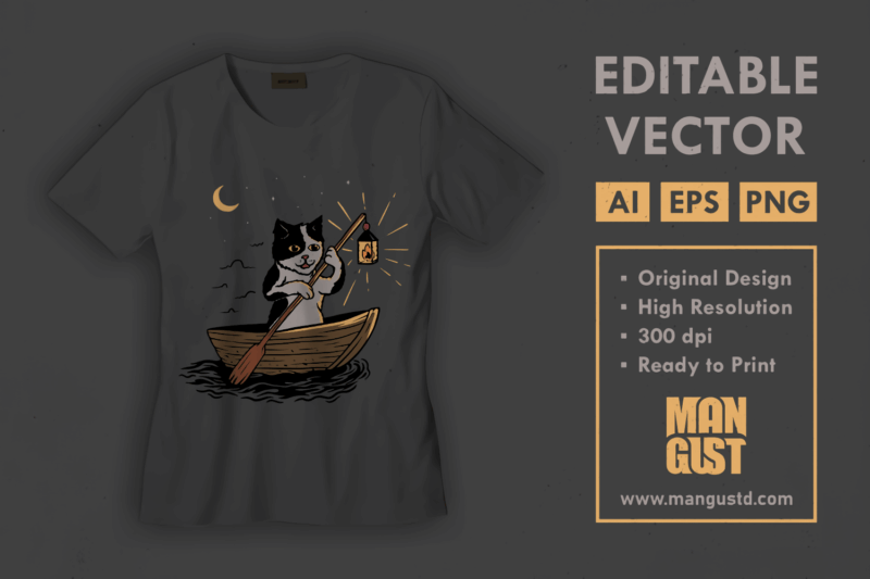The Sailor Cat is a vintage handdrawn illustration that is suitable for apparel or merchandise about nature, outdoors, adventure, animal, cat, pet, cute, funny, kitten, kitty, sea, ocean, fishing, sailor, pirate.