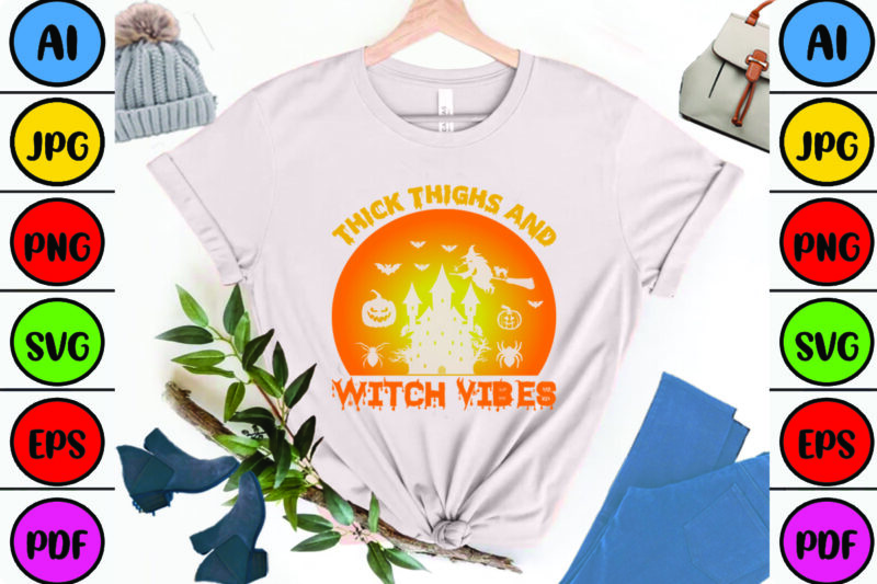Thick Thighs and Witch Vibes t shirt designs for sale