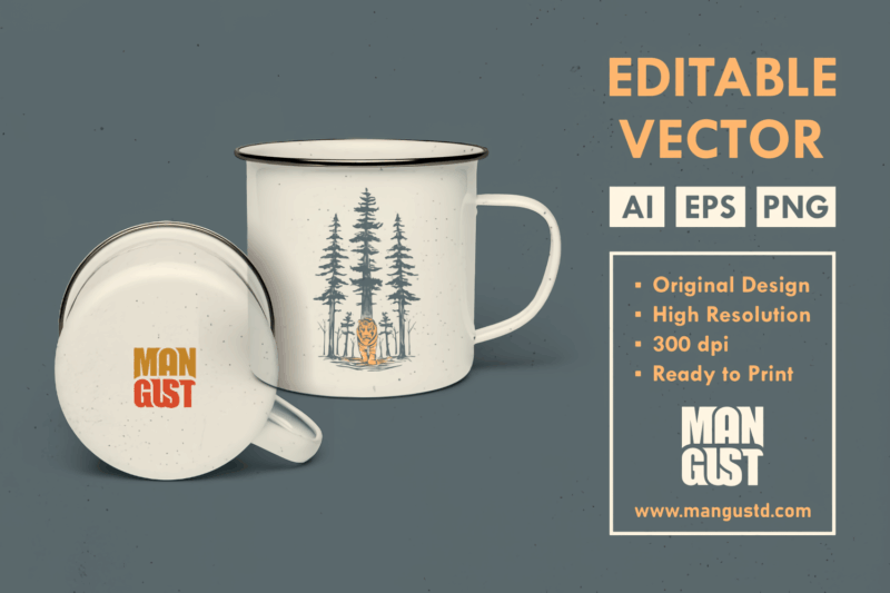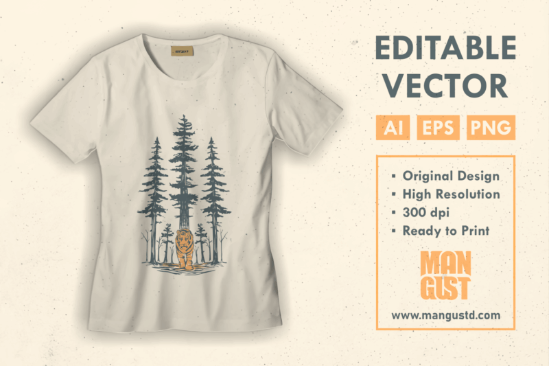 Tiger Woods is a vintage illustration that is suitable for apparel or merchandise about nature, outdoors, wild, wildlife, forest, animal, tiger, lion, trees, jungle, adventure, woods, redwood, national park.