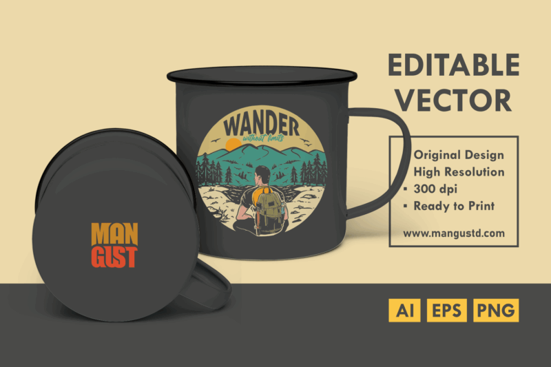 [email protected]Wander wihtout Limits is a illustration that is suitable for t-shirts, jackets, or merchandise with the theme of adventure, backpacker, mountain, national park, nature, outdoors, camping, hiking, travel, wildlife, trip, forest, summer, trekking, holiday.