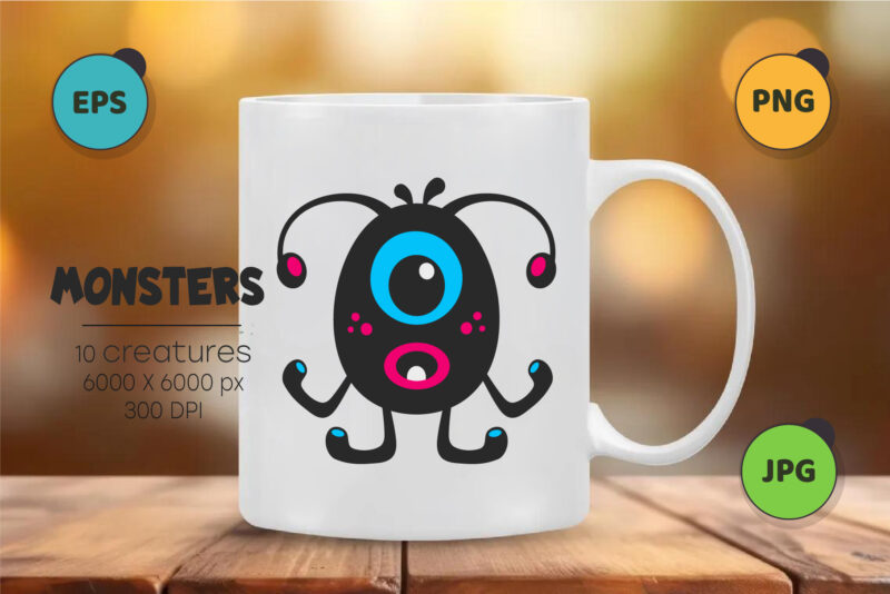 Whimsical Monsters Pack 04. Tshirt, PNG.