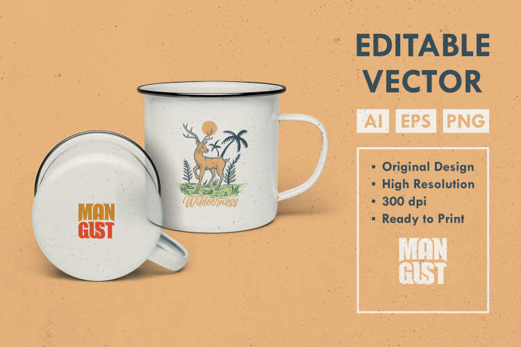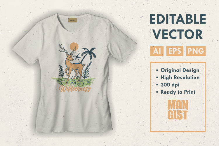 Wildeerness Wild Deer is a vintage illustration that is suitable for t-shirts, jackets, or merchandise with the theme of deer, stag, antler, horn, elk, moose, buck, reindeer, animals, wild, wildlife, nature, forest, outdoors, national park.
