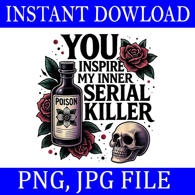 You Inspire My Inner Serial Killer Spooky Season PNG, Skeleton Skull Halloween PNG